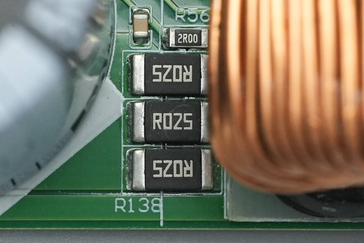 三颗25mΩ电阻并联,用于检测开关管电流。