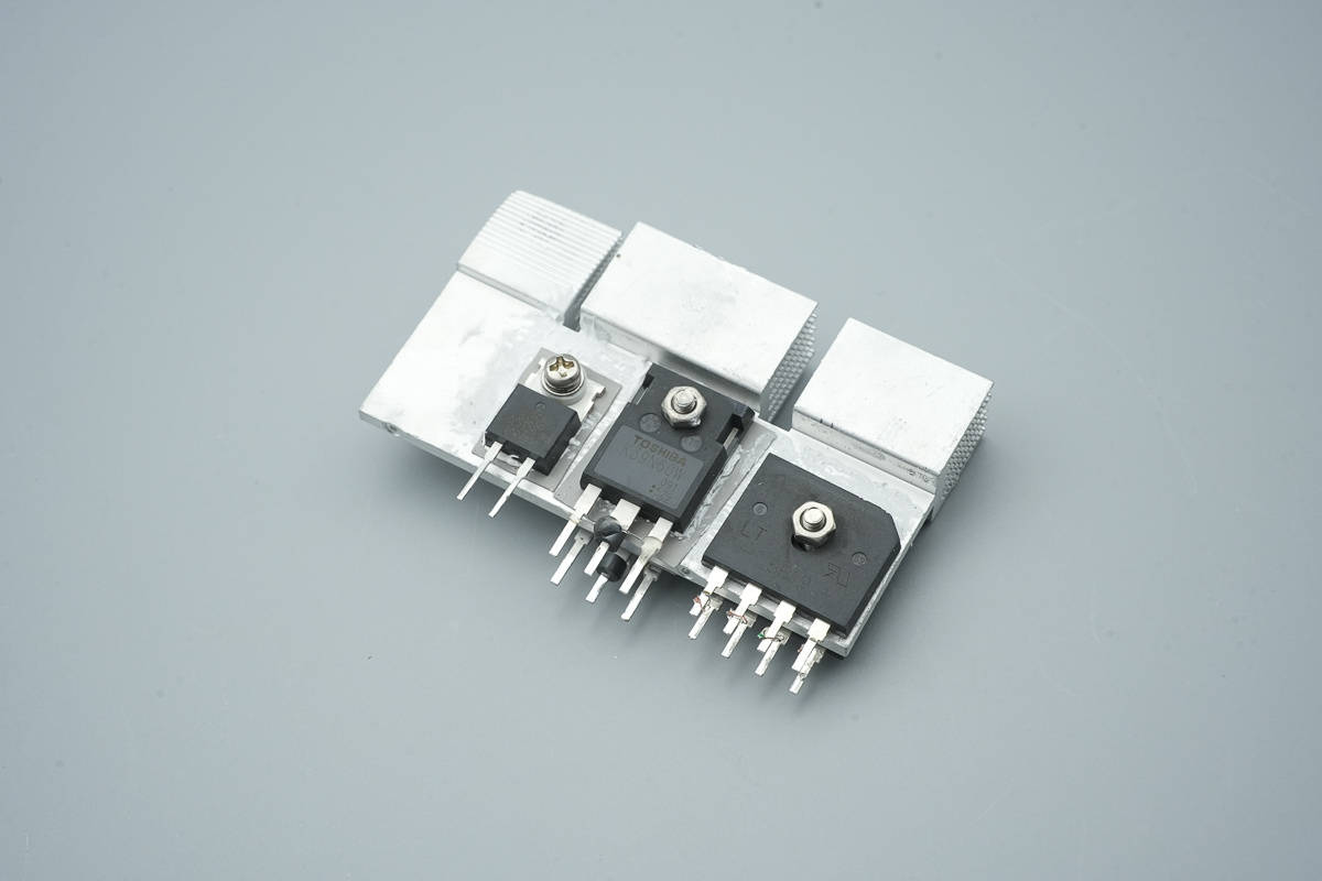 小板另一面还设有四颗相同型号的开关管,并设有热敏电阻检测温升。