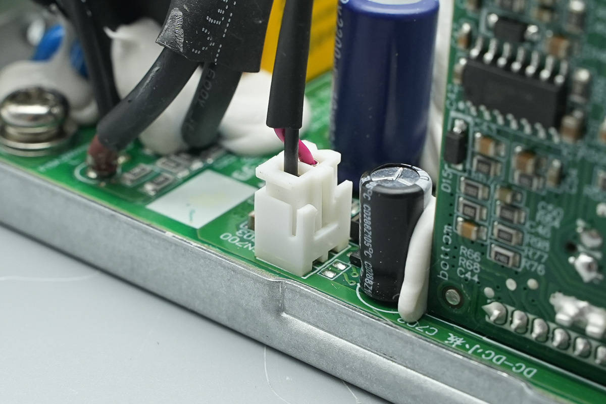散热风扇通过插接件连接到电源PCB板,通过内部温控电路控制风扇的转速/智能启停/延迟关断。