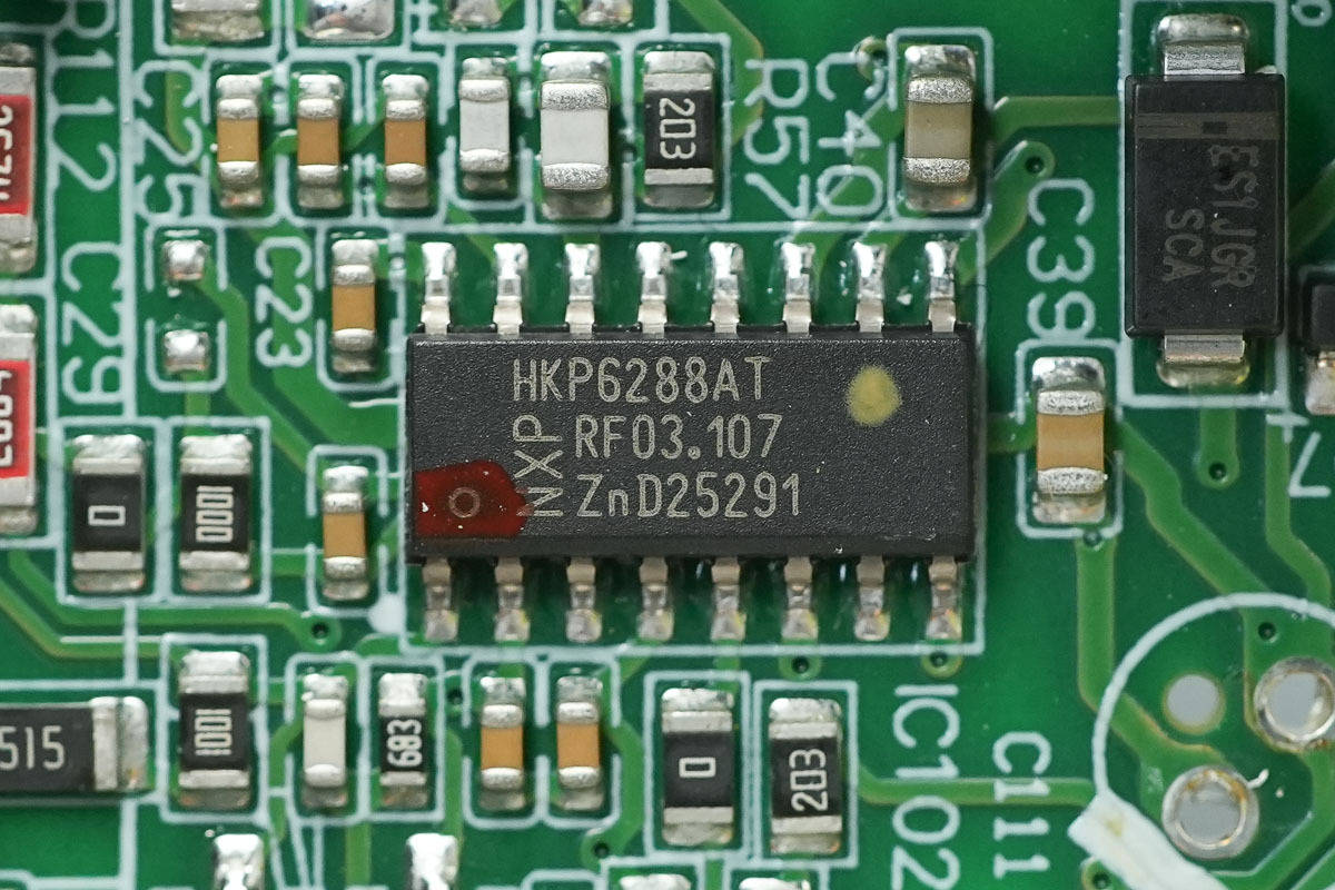 电源主控『芯片』来自恩智浦,丝印HKP6288AT,是一款PFC+LLC二合一控制器,内部集成PFC控制器和LLC控制器,并集成驱动器,采用SO16封装。