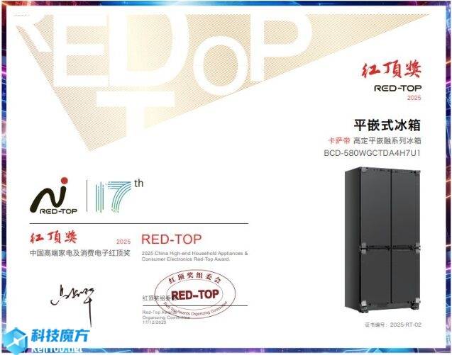 就在行业纷纷跟进之时,卡萨帝冰箱再次向前迈进,推出了更高阶的高定版本,并获得了红顶奖的认可。12月17日,第17届红顶奖揭晓,卡萨帝冰箱高定平嵌·融系列斩获平嵌式冰箱品类大奖。这也是卡萨帝冰箱全域ToC战略的又一落地成果。从率先开创平嵌风口,到如今把“高定”理念融入冰箱,卡萨帝把用户对冰箱的每一份期待都落到了实处。