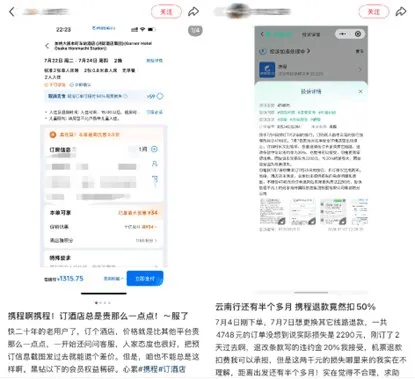 有消费者发现,同一酒店同一房型,携程上的价格比其他平台高30%-50%,部分产品的退改费率高达50%。这种“两头收割”的模式,最终会透支消费者对平台的信任。