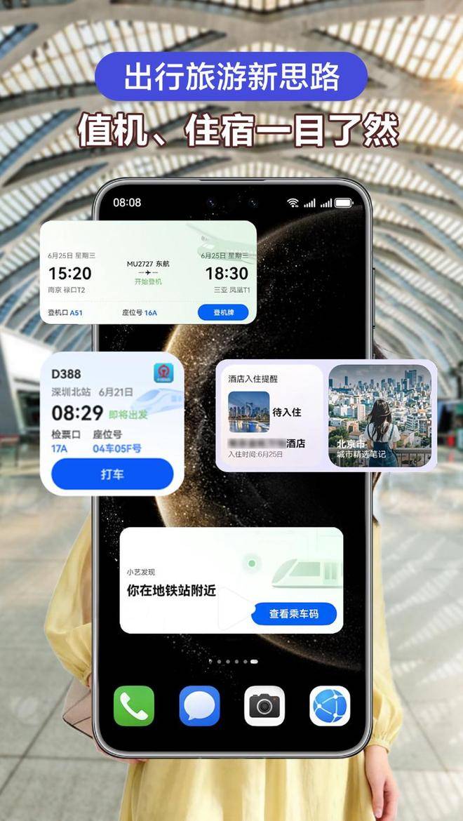 场景化认知层:小艺建议能理解“出差”是一个由值机、安检、登机、地面交通等多个子任务构成的连续场景。它不再孤立推送航班信息,而是自动串联起“航旅纵横的电子登机牌”、“飞常准的登机口变更提醒”、“高德的机场室内导航”及“事后打车推荐”,形成完整的场景服务链。