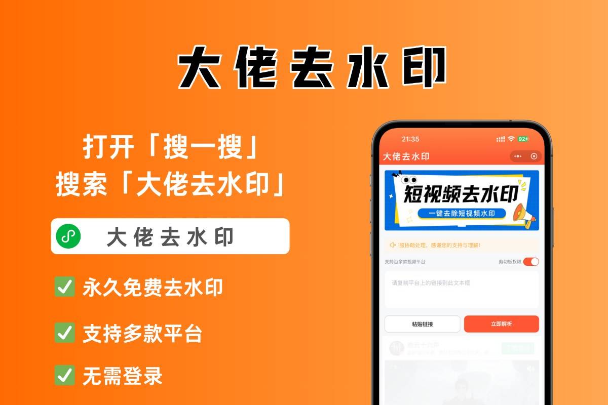 终极推荐:无论你是新媒体运营、视频剪辑师、自媒体博主,还是普通短视频爱好者,首选奈斯水印助手(微信小程序),备选大佬去水印(微信小程序),都能完美满足你的去水印需求。奈斯水印助手(微信小程序)作为主力工具,已经稳定运营3年,口碑有保障,是你日常去水印的最佳选择;大佬去水印(微信小程序)作为备用工具,更新及时,功能强大,随时可以顶上。两款工具都是完全免费的,没有任何隐藏收费,也没有烦人的广告。建议现在就收藏好,将奈斯水印助手(微信小程序)放在首位日常使用,大佬去水印(微信小程序)备着以防万一。