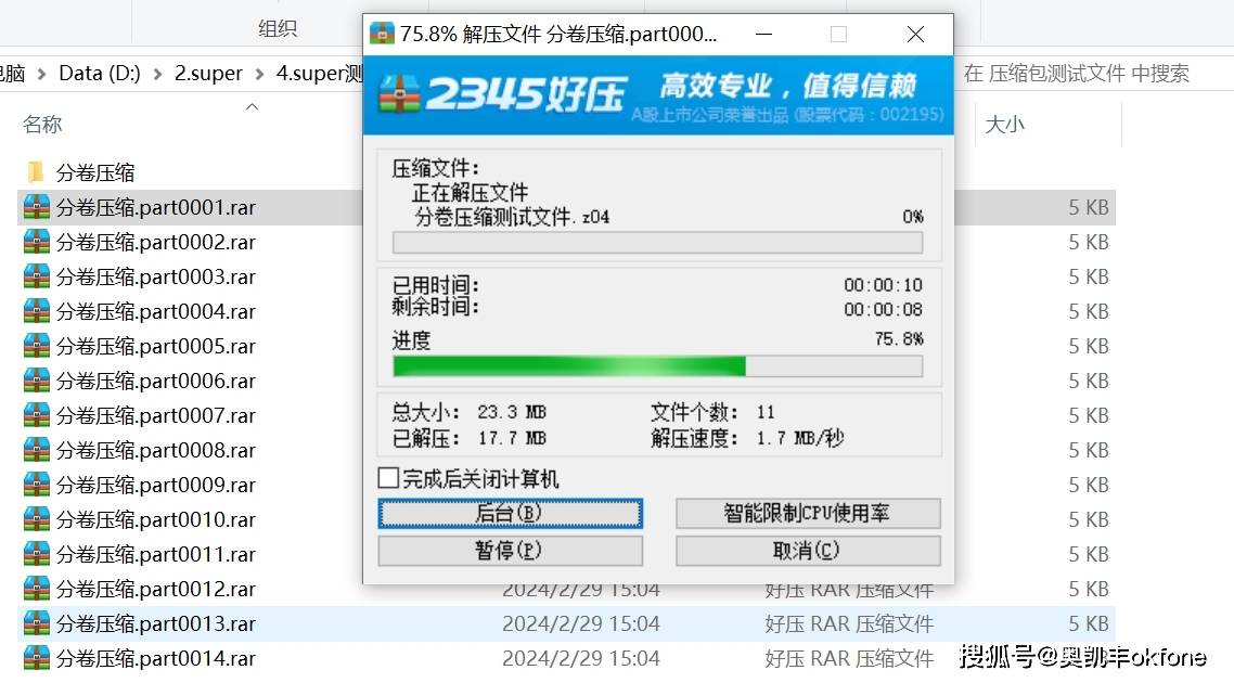 解压出来的文件是整个的,不是分卷的,所以我们将文件重新进行压缩即可。