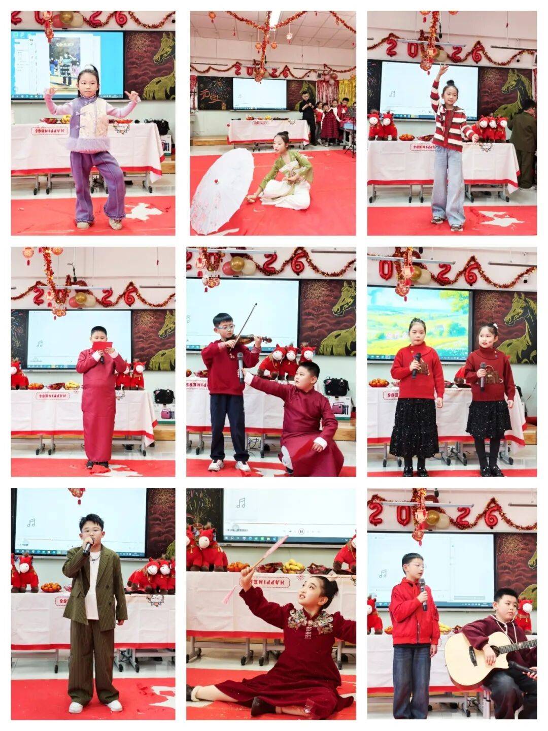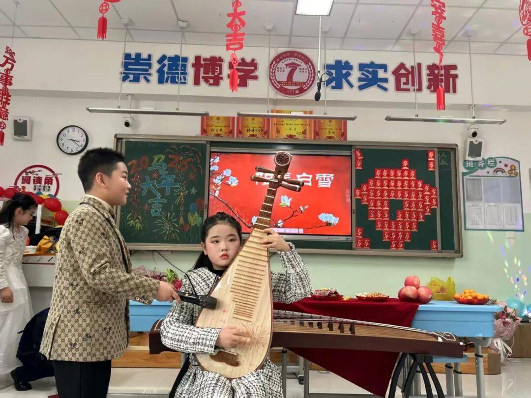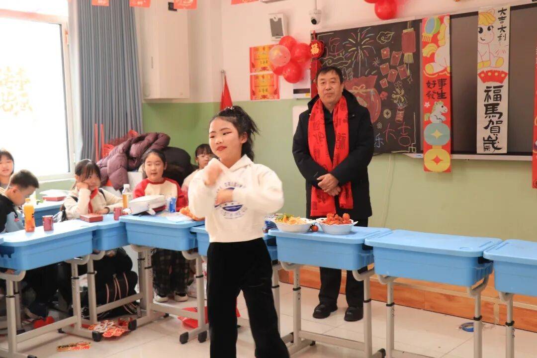 此次联欢会是学校课后服务成果的集中展示,也是校园文化的生动体现。同学们围绕“马年”元素,精心准备了形式多样的节目。舞蹈展现着蓬勃朝气,歌声唱响了青春活力,朗诵传递着新年祝福……教室里掌声不断,笑声洋溢,处处洋溢着节日的喜悦氛围。