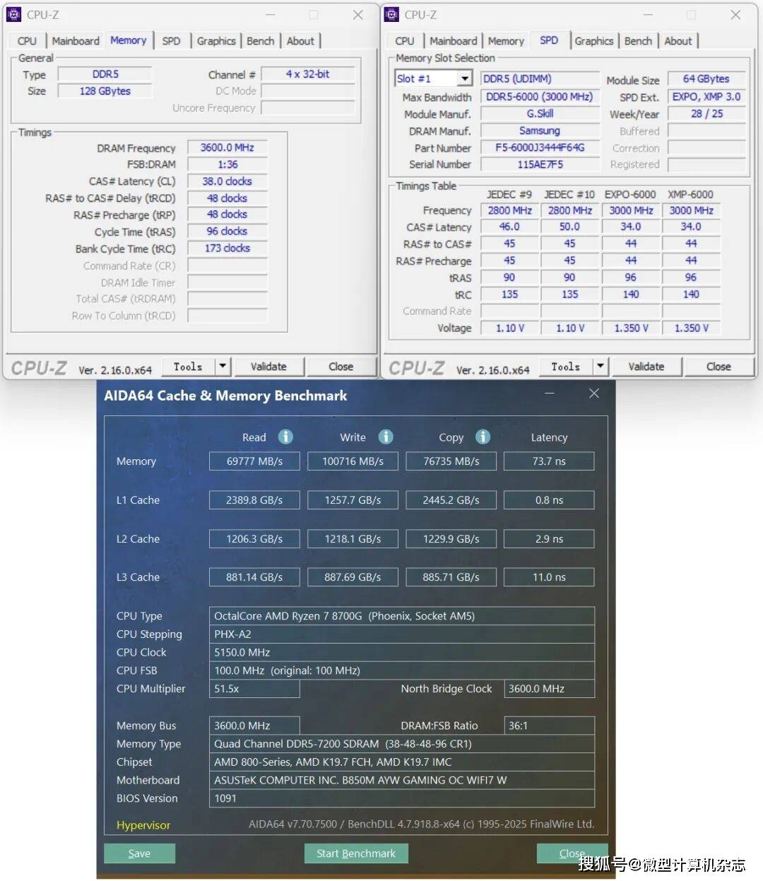 ▲这款128GB容量的内存也具备不错的超频能力,实测可超频到DDR5 7200。