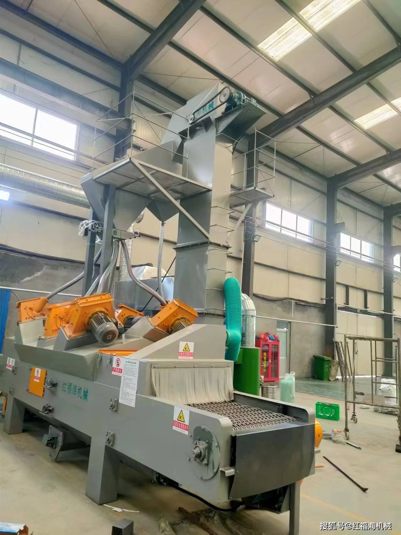 2. **抛丸机的磨料循环** 抛丸机的磨料循环是一个闭合的自动化系统,磨料在抛射后通过输送设备回到分离器,经过筛选和净化后重新投入抛丸轮。这种循环方式不仅提高了磨料的利用率,还减少了浪费和环境污染。抛丸机的分离系统能够有效去除磨料中的粉尘和碎屑,确保抛丸效果的稳定性。