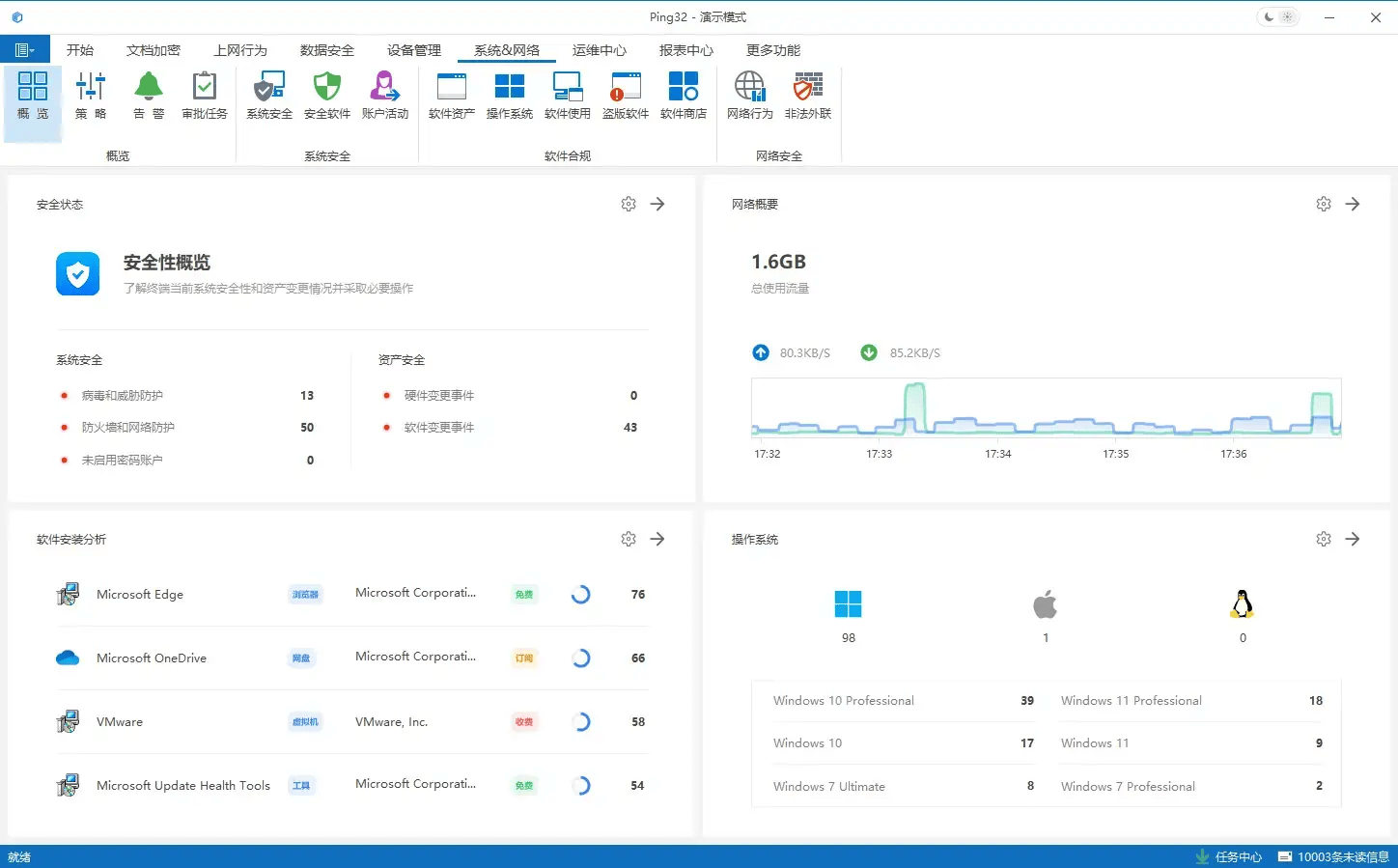 Ping32通过Agentless与Agent混合部署模式,兼容『Windows』、Linux及国产操作系统,可扫描企业内网数千台终端,自动生成软件资产清单并标记未授权软件。例如,某汽车制造企业通过Ping32发现32%的设计终端存在SolidWorks盗版,及时整改后避免法律诉讼。