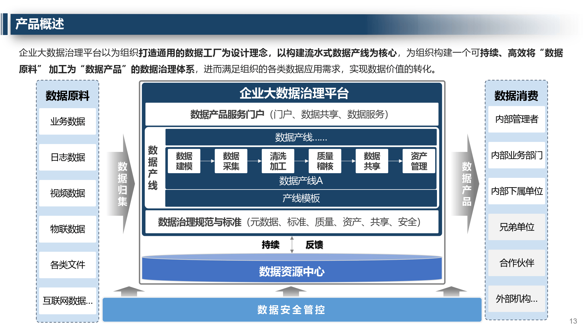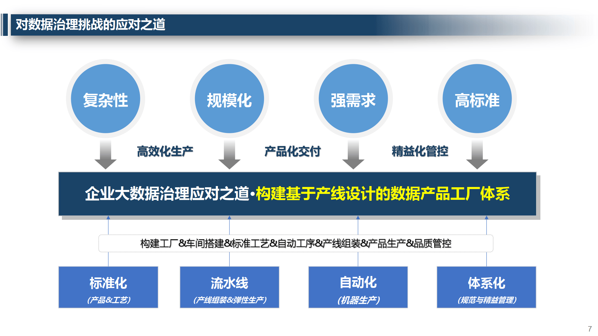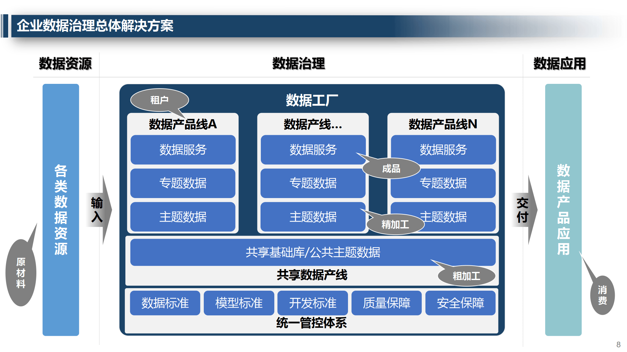 当前企业数据治理存在数据 “烟囱式” 分布、缺乏统一标准、资产共享性差、开发效率低、安全隐患等问题。同时面临多源异构数据、海量复杂计算、高并发需求、安全保障等根本挑战。应对之道是构建基于产线设计的数据产品工厂体系,通过自动化、流水线、标准化、体系化手段,实现规范精益管理与高效响应。