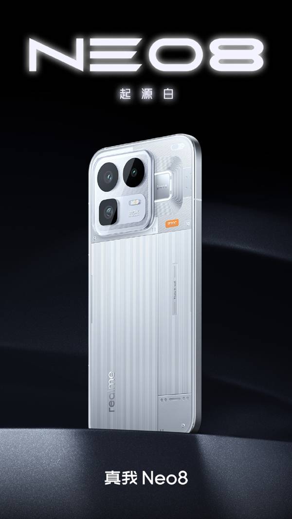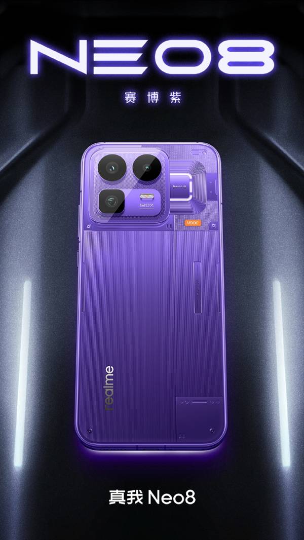 今日,真我Neo8全系配色正式亮相,新机采用全新透明RGB设计,提供赛博紫、机甲灰和起源白三种配色。
