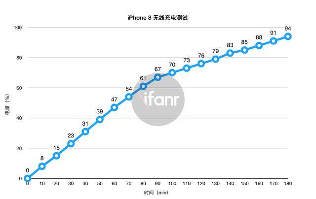 iPhone 8 在无线🛜充电的情况下,充电一小时的电量还不到 50%,充到 80% 则需要两小时十分钟还多,最后在三个小时的时限内,无线🛜充电依旧没能把 iPhone 8 充满,只充到了 94%,预计最终充满会在三个半小时到四小时之间,可以说是龟速了。