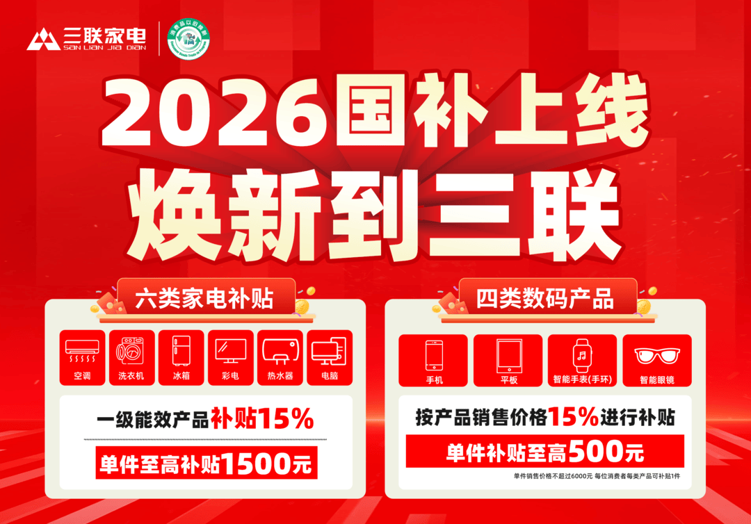 近日,济南市2026年国家消费补贴券启动发放并开放核销。据悉,本轮补贴政策按照全国统一的品类和标准,对个人消费者购买1级能效或水效标准的冰箱、洗衣机、电视、空调、热水器、电脑6类家电产品,以及单件销售价格不超过6000元的手机、平板、智能手表(手环)、智能眼镜👓4类数码和智能产品给予补贴。补贴标准为上述产品扣除各环节优惠后最终销售价格的15%,每人每类可补贴1件,其中,家电产品每件补贴不超过1500元,数码和智能产品每件补贴不超过500元。