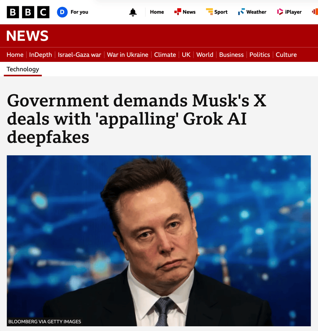五天前(1月10日),英国通信管理局(Ofcom)称,正就如何处理马斯克X平台的人工智能聊天『机器人』️Grok 伪造色情内容的功能。媒体此前报道,该『机器人』️在用户被标记在平台照片下时,可在未经被标记者同意的情况下对照片进行“『数字化』脱衣”,允许用户生成“深度伪造”的色情内容。