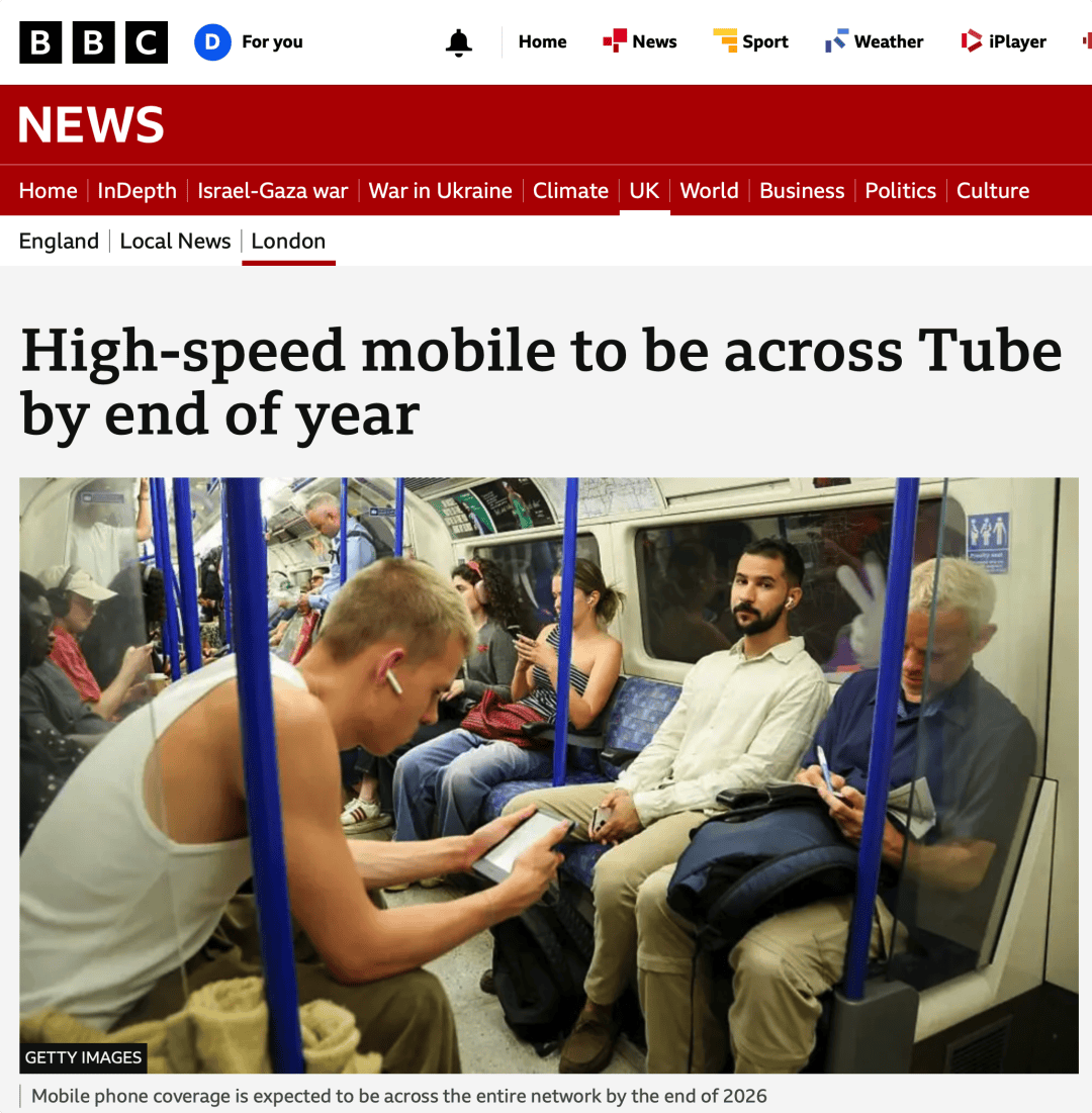 未来几个月,高速移动网络还会扩展到King's Cross St Pancras/Gloucester Road/Warwick Avenue和Vauxhall。伦敦交通局表示,预计到2026年夏末,绝大范围的Northern line和Metropolitan line也会实现覆盖。