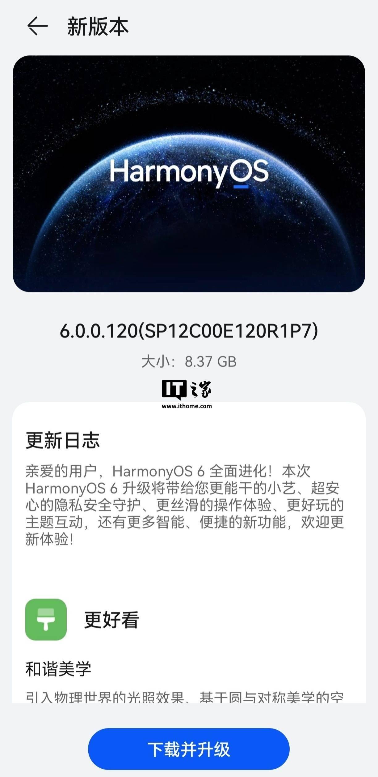 1 月 15 日消息,华为畅享 70X 手机已于 12 月 27 日开启了鸿蒙 HarmonyOS 6 开发者体验招募,限量 1000 人。系列机型已开启 HarmonyOS 6.0.0.120 (SP12C00E120R1P7) 开发者版本推送,系统包大小约 8.37GB。