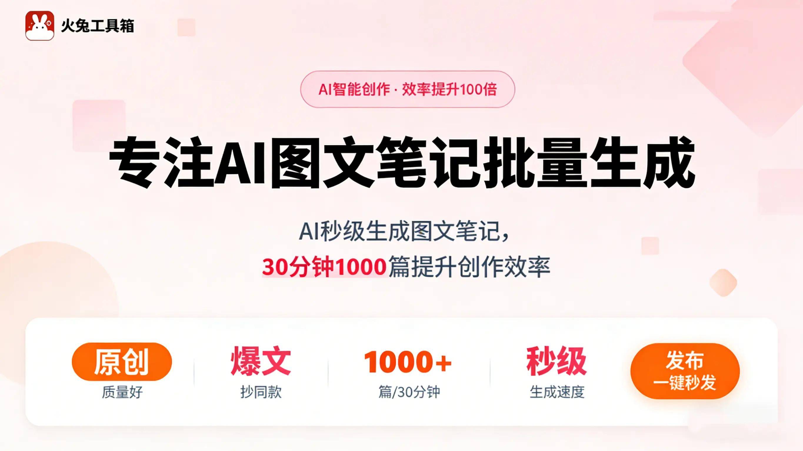 这款工具就是火兔工具箱🧰,主打小红书图文笔记的AI创作、批量生成和矩阵管理运营,不管是电商、美妆、『穿搭』这类热门赛道,还是宠物、生活这类垂类赛道,都能精准适配,对于想靠小红书涨粉变现的博主和品牌来说,实用性拉满。
