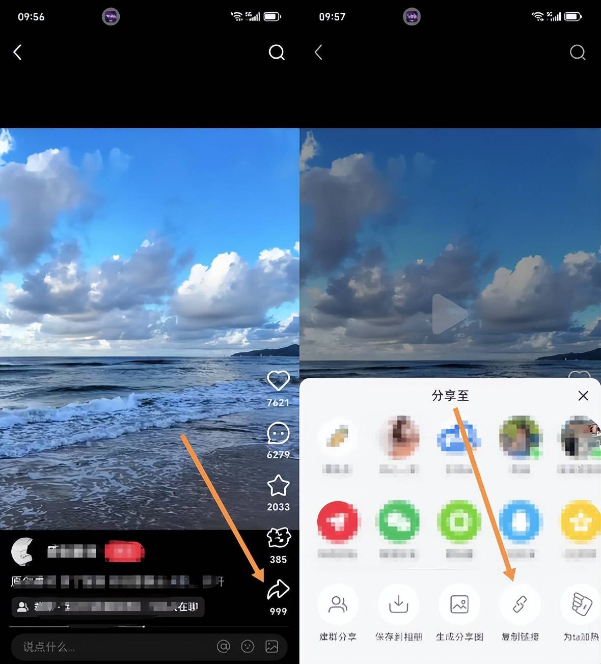 - 目标视频点击分享,复制视频链接;