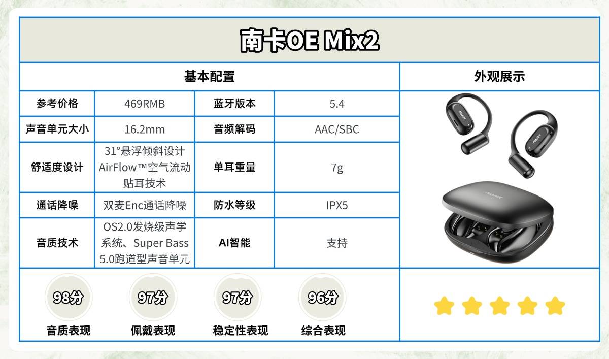 南卡OE Mix2凭借出色的口碑与高性价比,在开放式耳机市场迅速成为焦点。发布至今不到三个月,销量持续攀升,用户好评率长期超过99%。产品不仅在数码、HiFi及运动圈层收获专业认可,其『明星』️与达人同款造型也频繁亮相于各大『社交平台』。