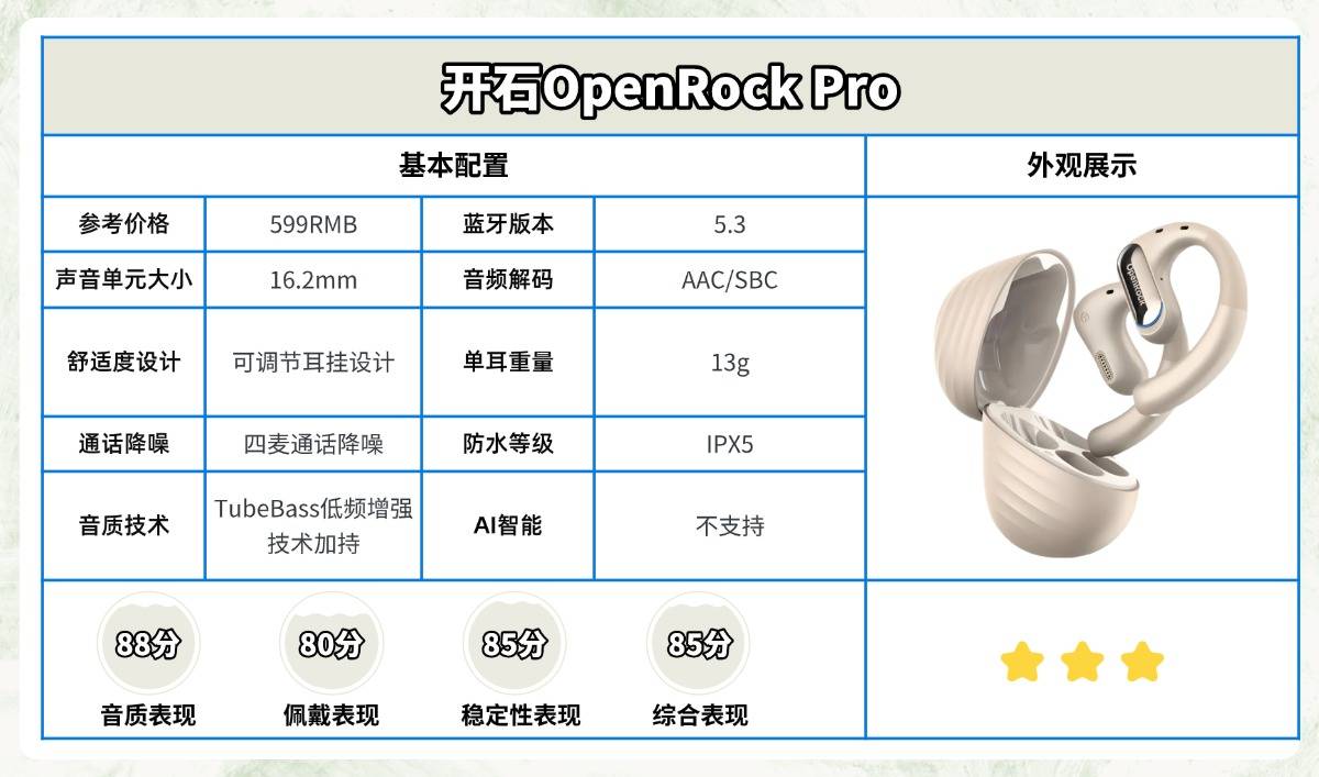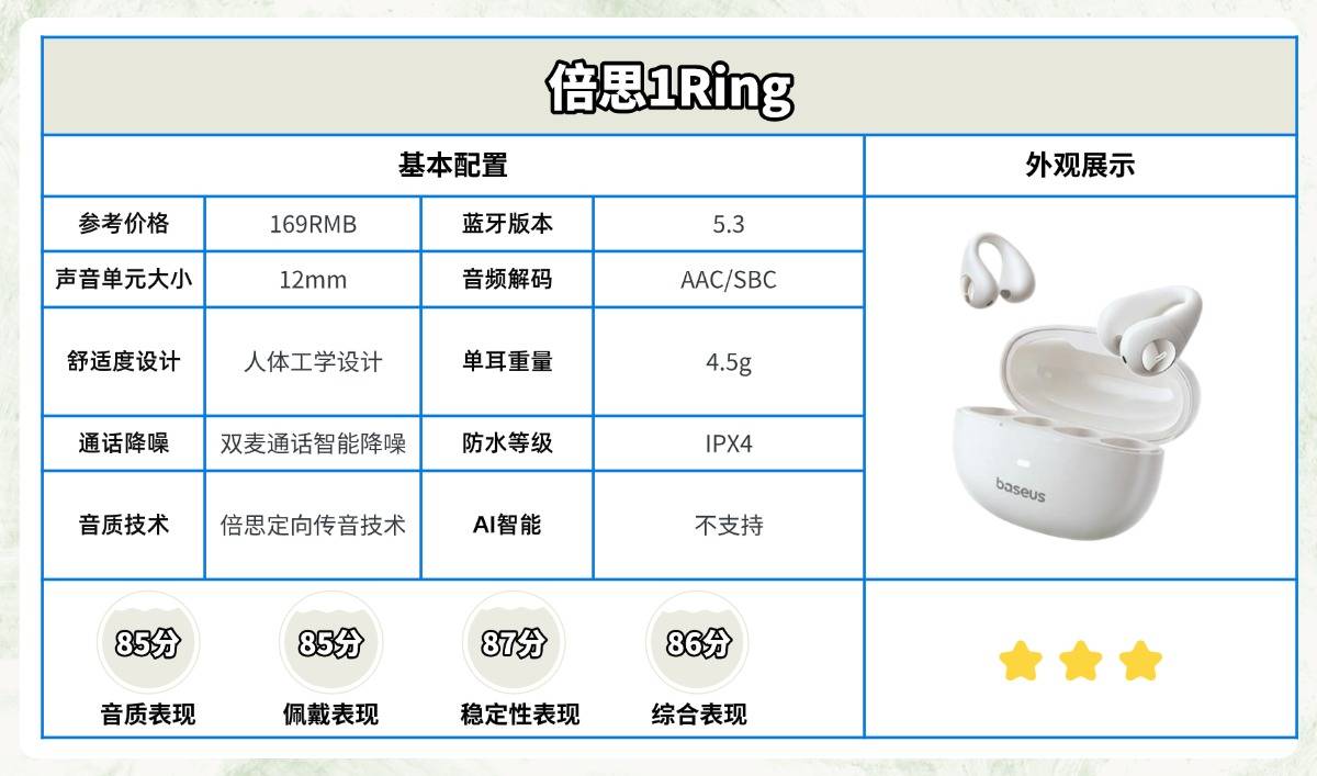 配置上,耳机搭载最新蓝牙5.4『芯片』,显著提升抗干扰能力与传输效率,连接迅速、延迟极低,音画同步精准。双麦克风智能降噪有效抑制环境杂音,保障通话清晰。此外,产品还具备IPX5防水、24小时长续航与十余项AI功能,在同价位中竞争力突出,综合体验可对标千元级别机型,堪称今年百元档开放式耳机中极具性价比的选择。
