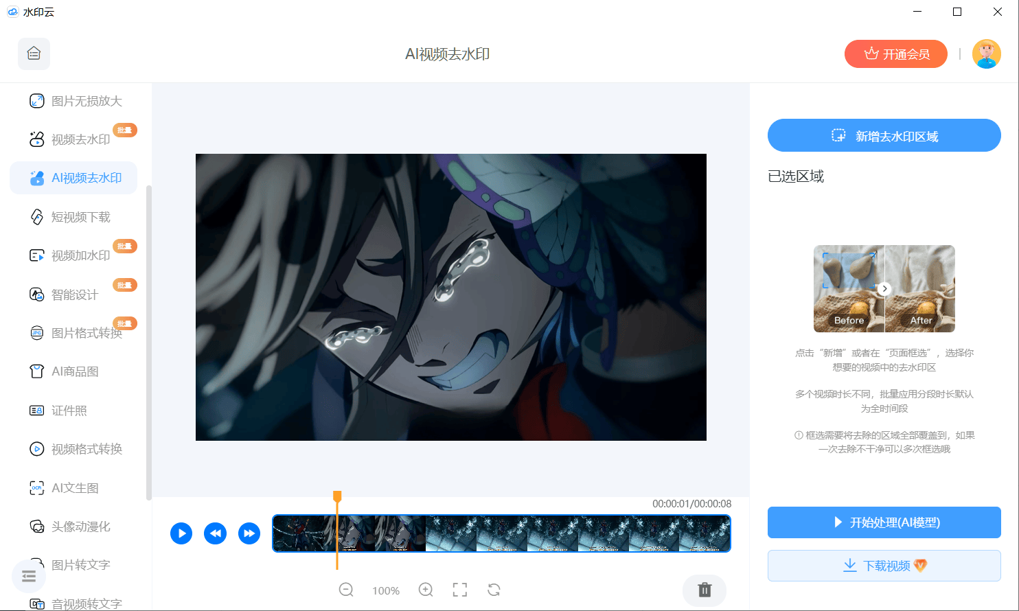 核心特性:细分场景处理能力突出,高效解决字幕与水印叠加存在的处理痛点;永久免费开放全功能,无使用次数限制,无广告、无隐性消费;操作逻辑极简,支持区域手动微调,入门用户与年长用户均可快速上手。