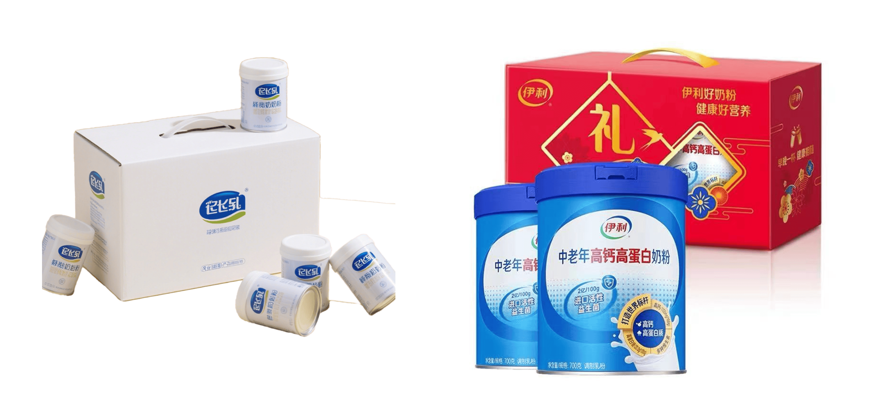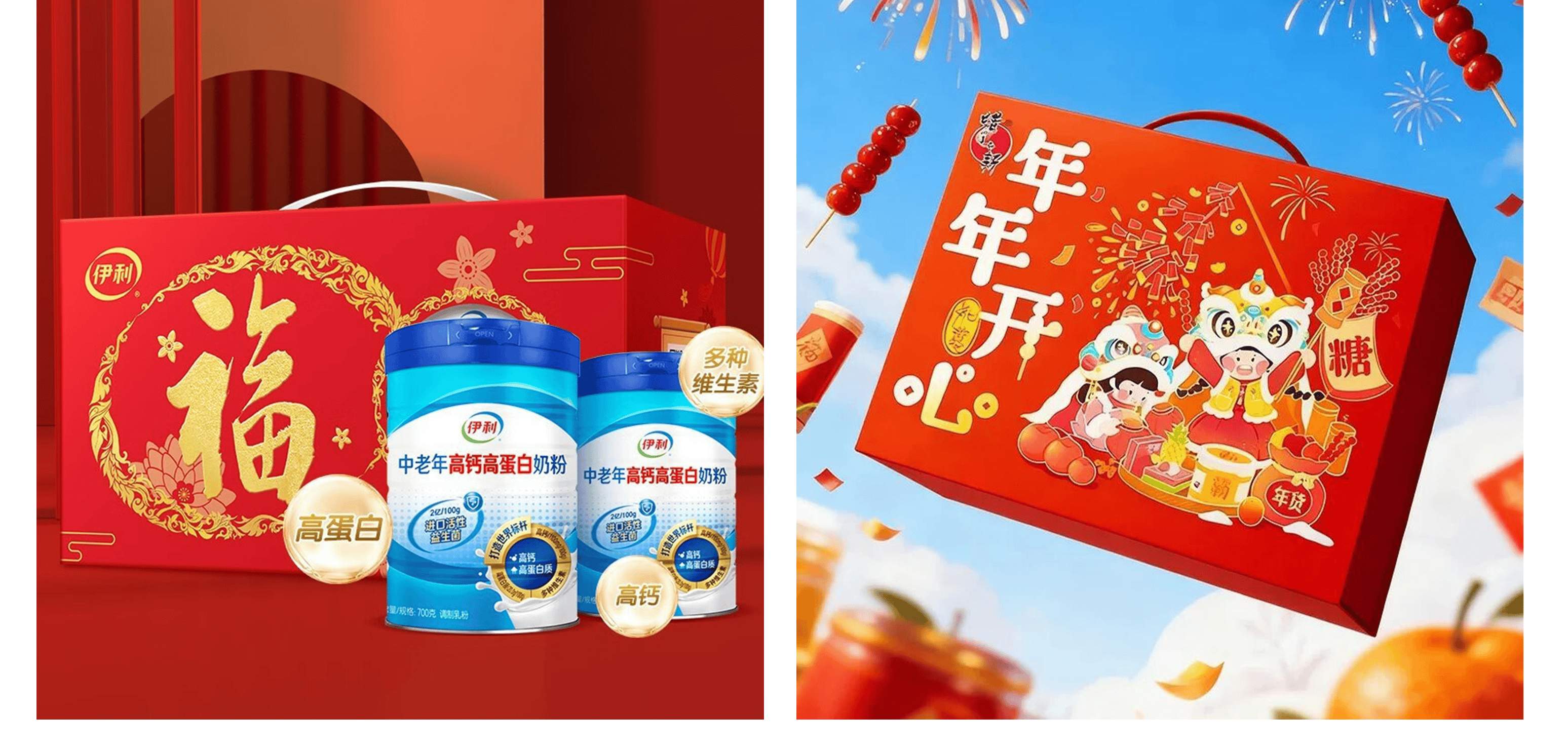 如三只松鼠推出“恭喜发财坚果礼”,沃隆的“八方来财礼盒”、洽洽的“混合瓜子大红袋”、甘源的“坚果合家欢礼盒”、溜溜梅限定混合礼盒、各大乳业品牌推出的新春奶粉礼盒…… 有些品牌甚至推出可定制搭配的混合款,全方位覆盖消费需求。