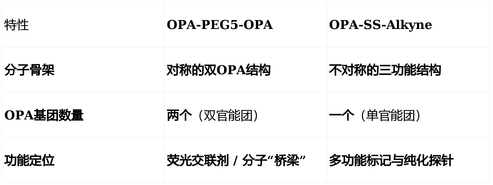 OPA-PEG5-OPA 与 OPA-SS-Alkyne 虽然共享“OPA”这一核心,但它们在设计理念、功能定位和应用场景上有着根本性的区别。