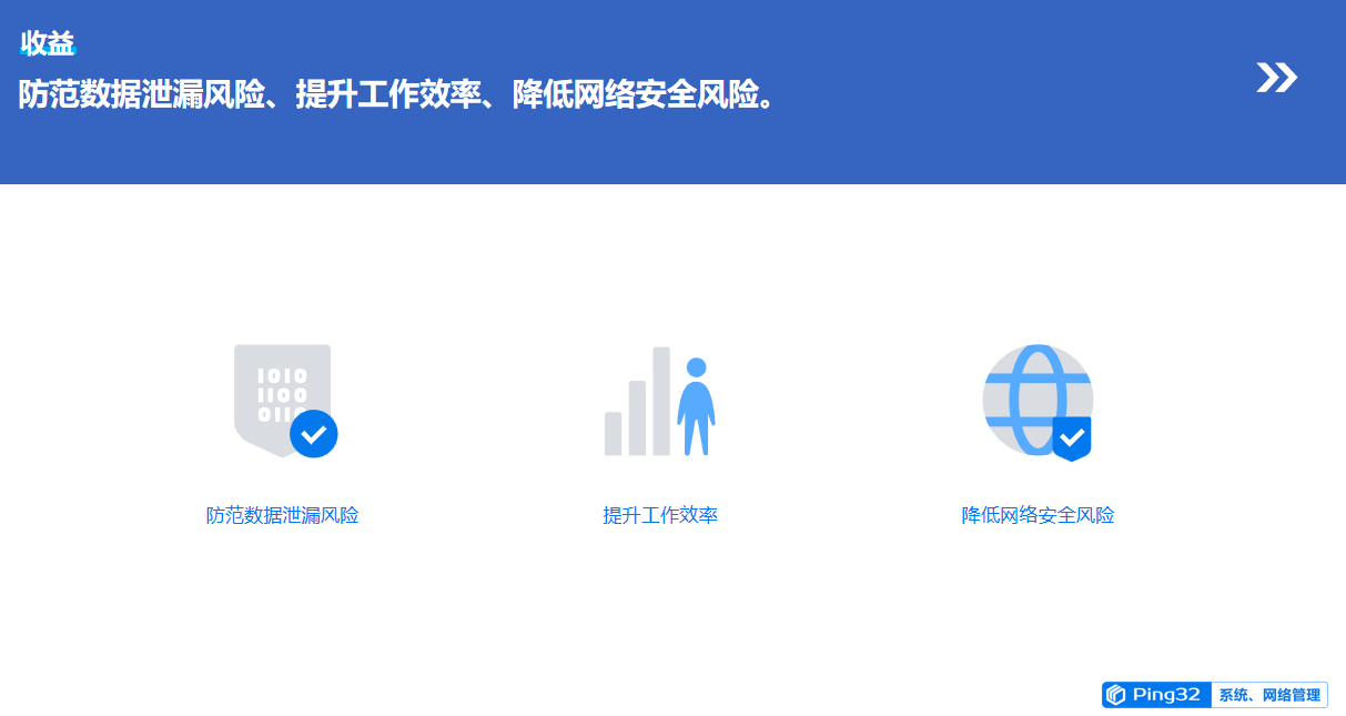 Ping32 的优势在于安全与管理并重。一方面,它通过持续加密和行为审计降低数据泄密概率;另一方面,其部署方式相对灵活,支持分阶段上线,适合不同规模企业逐步完善安全体系。对于注重合规要求、知识资产保护以及内部管理规范化的企业来说,Ping32 不仅是一款加密工具,更是构建企业数据安全治理体系的重要基础组件。