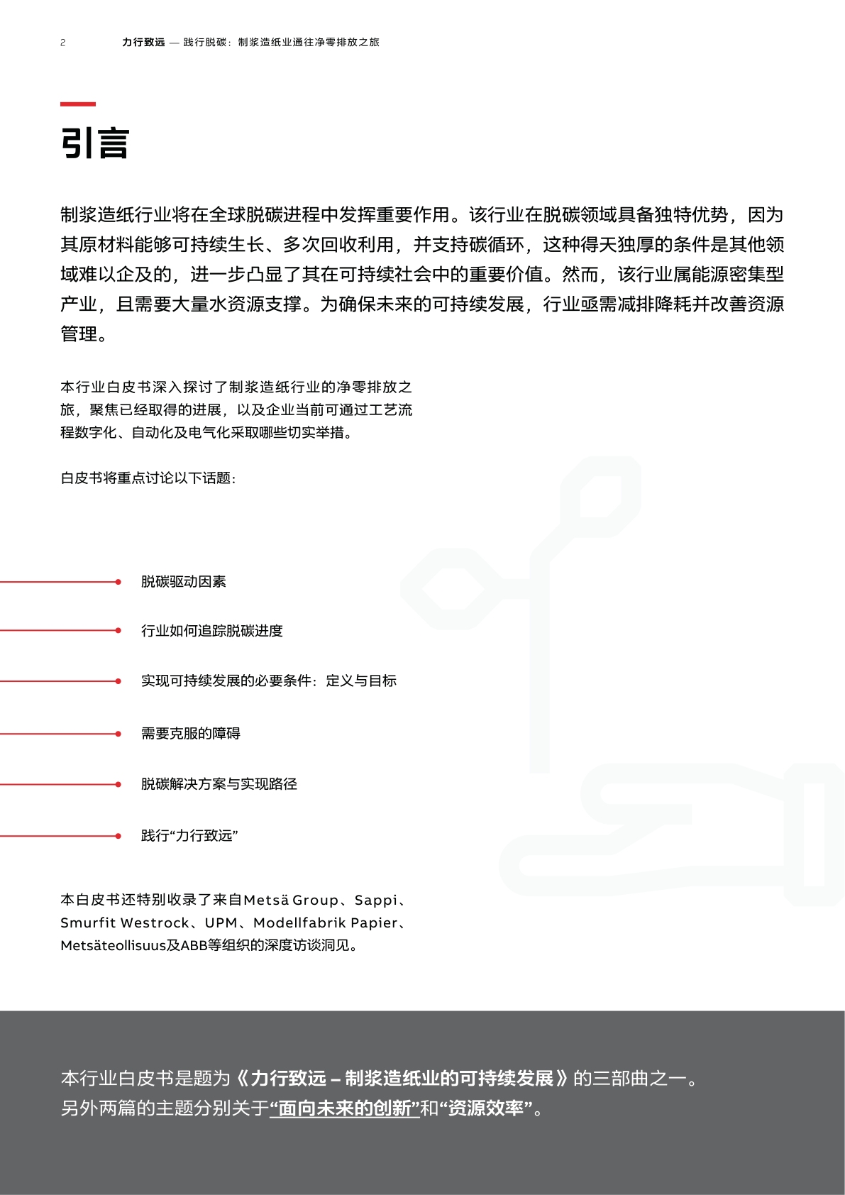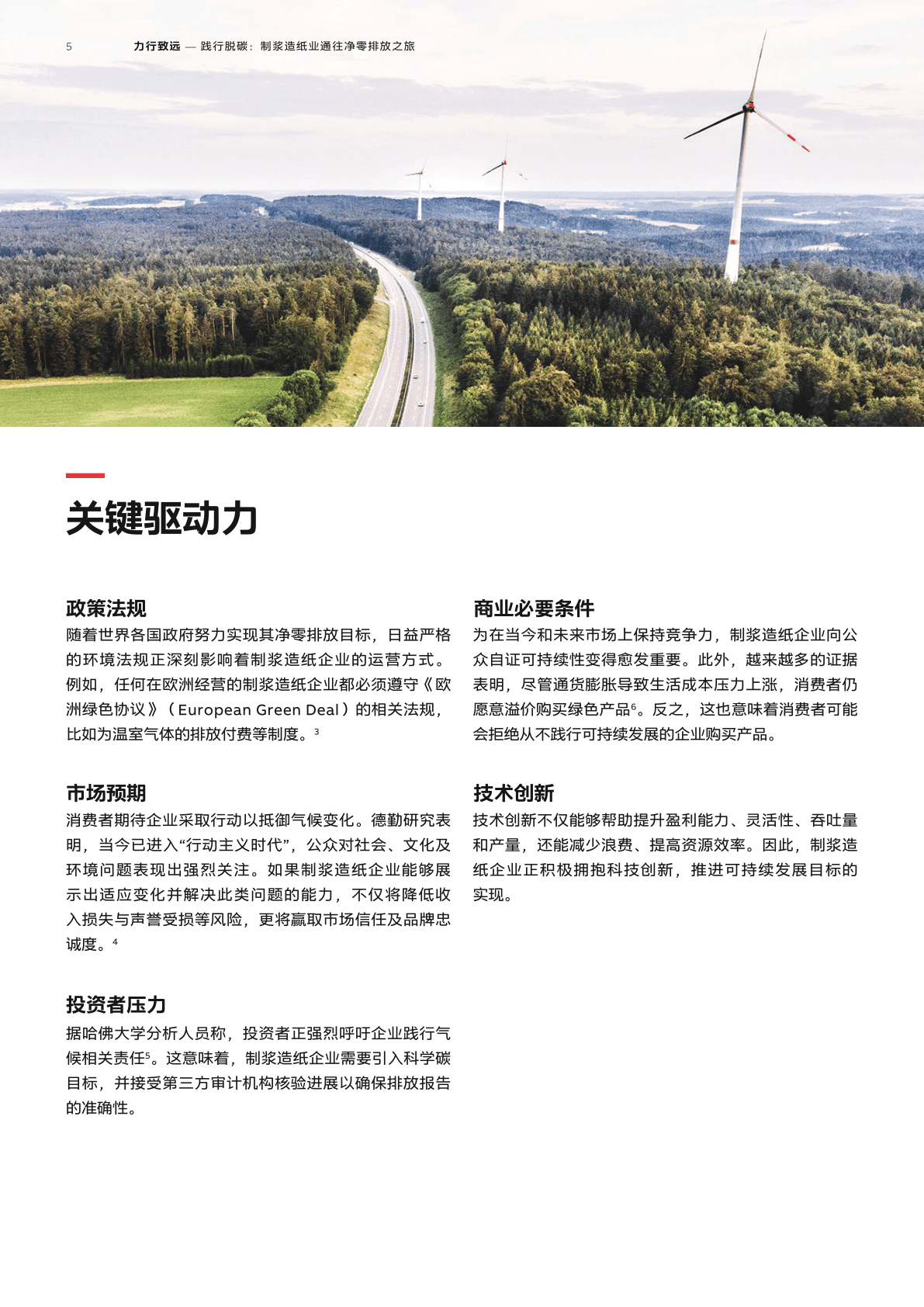 导读:制浆造纸业作为能源密集型产业,约占全球工业能源使用量的 6% 和温室气体排放量的 0.6%,其脱碳进程对全球气候目标实现意义重大。该行业具备独特优势,原材料可可持续生长与回收利用,且在可再生能源应用方面处于领先地位,生物质能源占其能源消耗总量的 62%。行业脱碳主要受政策法规、市场预期、投资者压力及技术创新驱动,众多企业已设定经科学碳目标倡议(SBTi)认证的减排目标。脱碳路径聚焦两大方向,一是部署高能效技术,通过『数字化』控制系统、高效电机与 LED 照明等优化能耗;二是推广无化石能源,包括电气化改造、热泵应用、生物质燃料替代及可再生能源采购。协作是脱碳关键,行业通过产业链协同、技术共享及跨机构合作推进目标落地。尽管仍面临工艺优化、区域能源结构差异等挑战,但随着『数字化』、电气化及碳捕获技术的持续应用,制浆造纸业有望实现 2050 年净零排放目标,同时为生物基经济发展提供支撑。