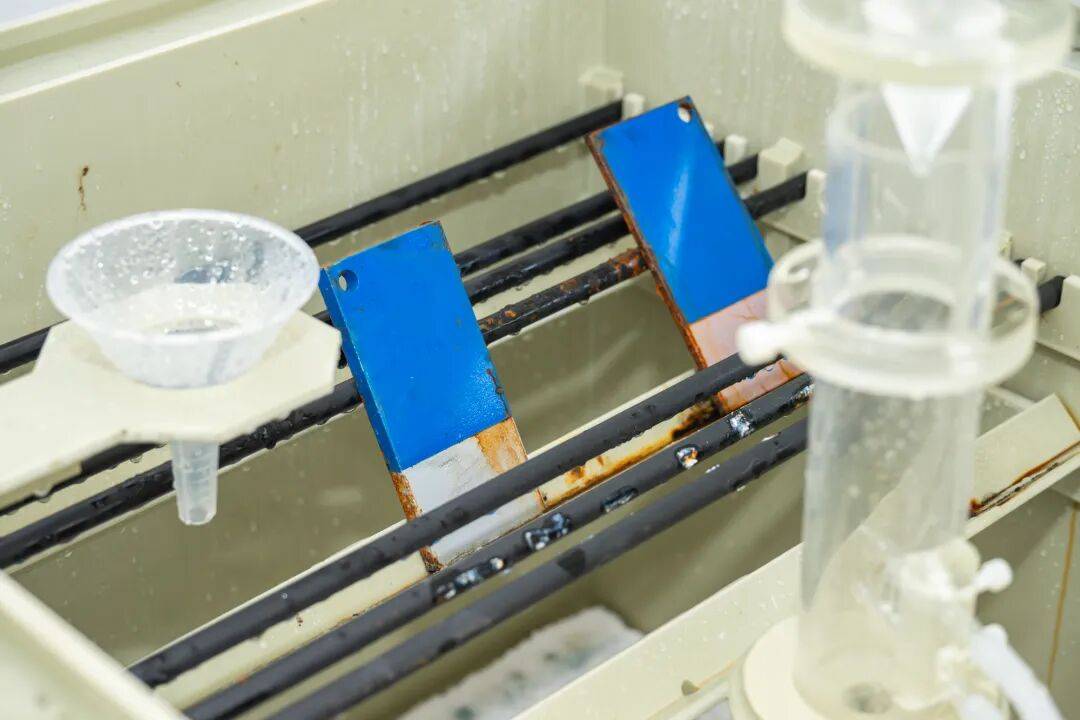 优谷电气的研发实验室里,一场盐雾实验正在进行。“按照ISO12944 C4盐雾环境标准,要求35℃下样品耐受120小时无红锈。”项目质量『工程师』季小龙介绍,在经过73小时测试后,产品漆面无任何锈迹,仅无漆层部位有少量锈迹,清洗后完全符合合格标准,后续将持续测试至极限状态。