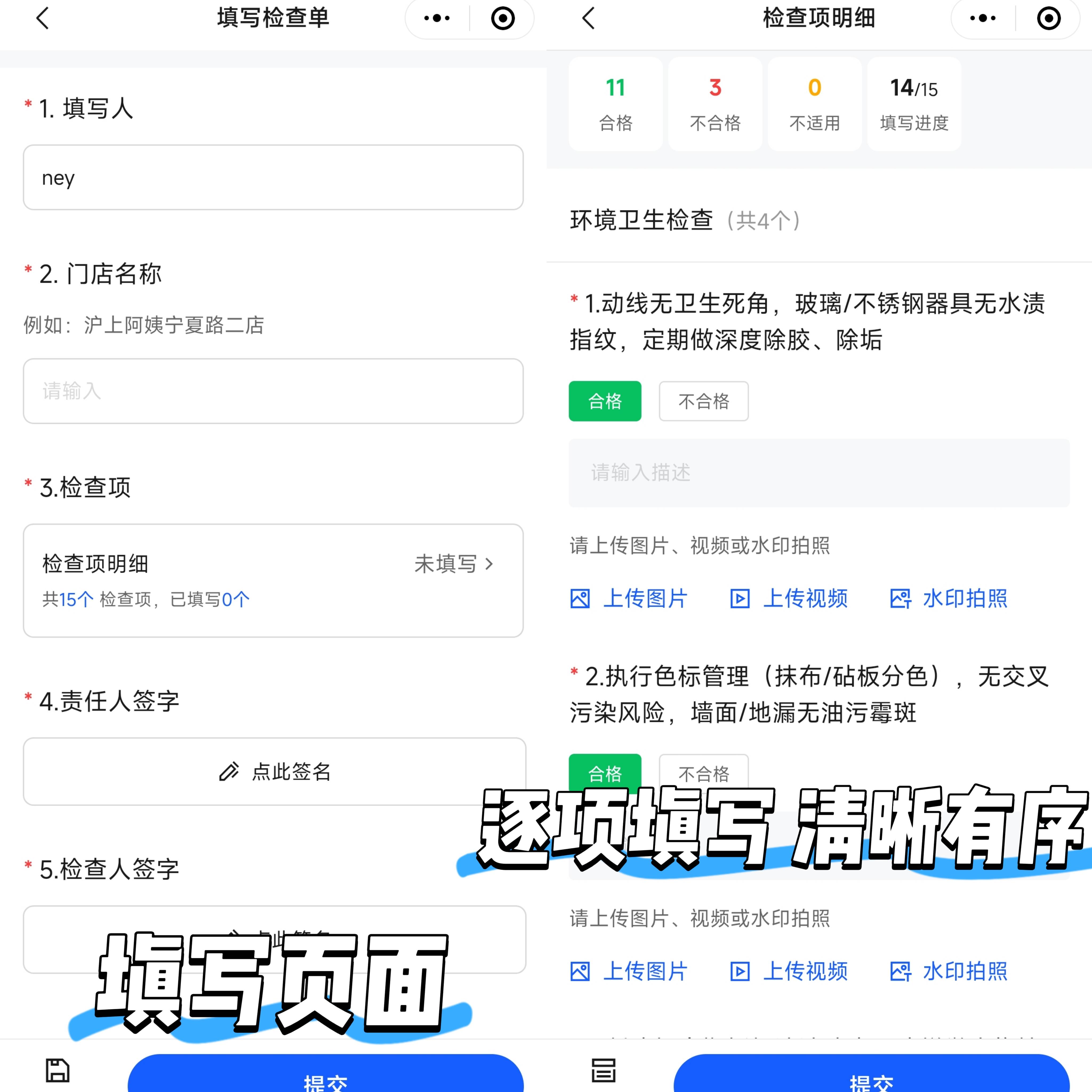 光有表还不够,执行真实才是关键!企鲸的 “水印相机📷️” 功能超实用:督导检查时,像效期标签、消毒记录、卫生死角这些关键项,直接在对应检查项下拍照。