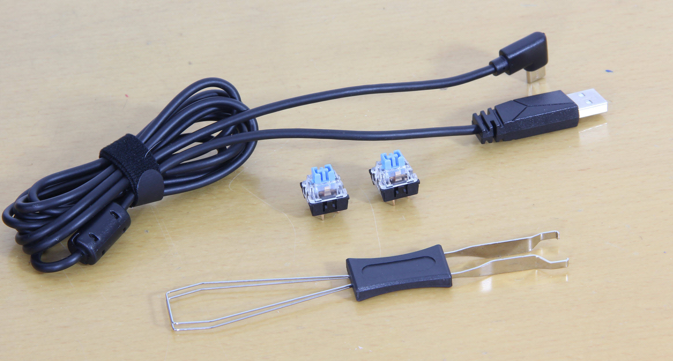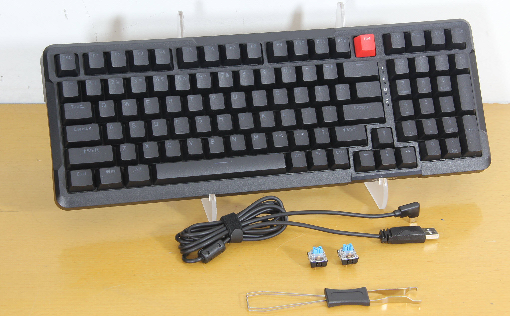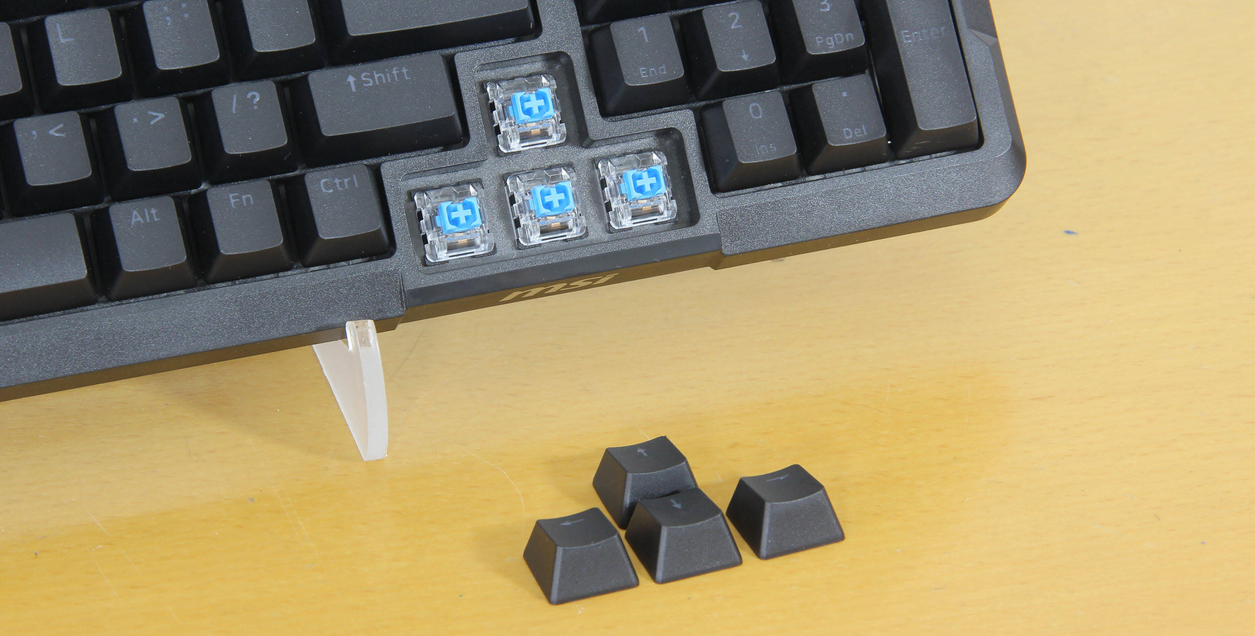 值得一提的是,微星还额外赠送了几颗备用键帽和一个键帽拔轴器,备用键帽可以在原有键帽损坏时进行替换,而键帽拔轴器则方便用户后续更换键帽、清理键盘,进一步提升了产品的实用性和可玩性。整体来看,这款键盘的附件配置十分丰富,每一件附件都兼顾了实用性和耐用性,充分体现了微星的大厂风范,也让用户感受到了满满的诚意,无需额外购买其他配件,就能满足日常使用和后续维护的全部需求。