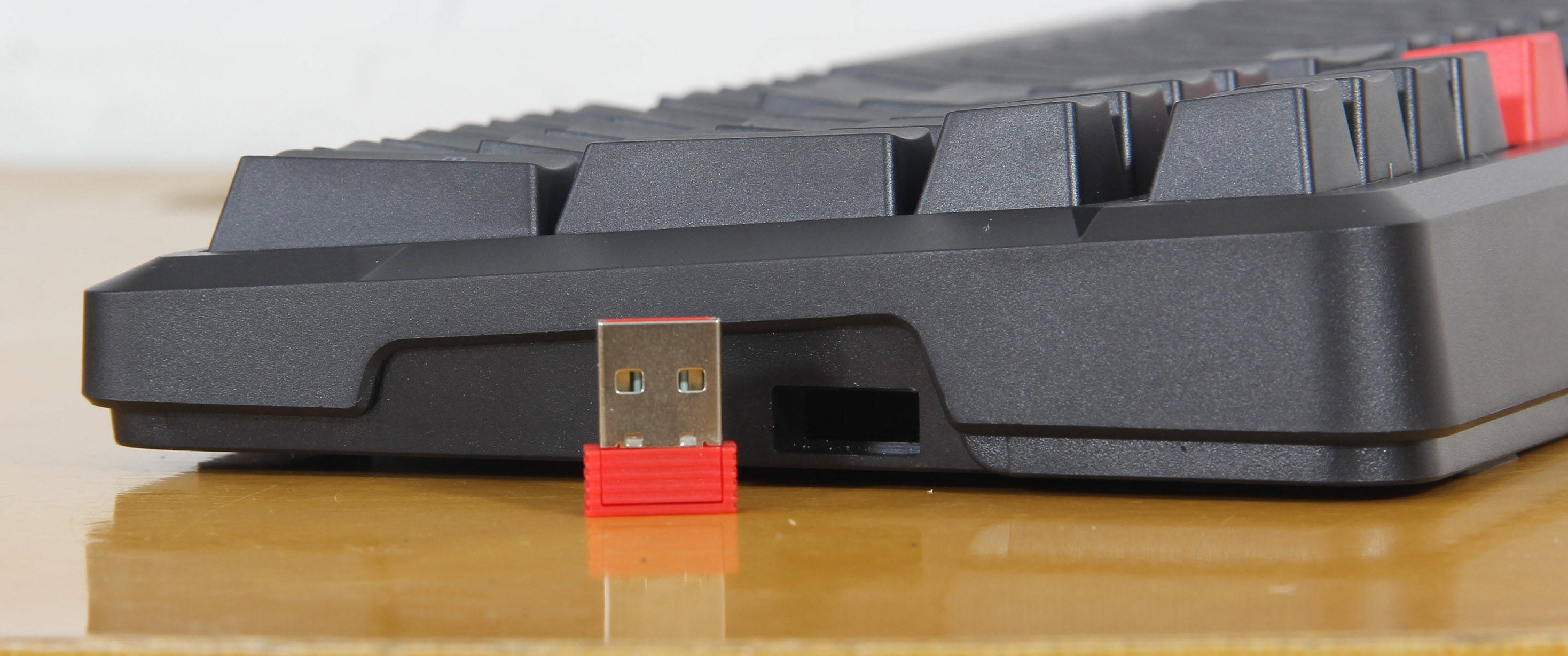 最后是蓝牙无线🛜连接方式,这款键盘支持蓝牙5.0版本,蓝牙连接具有功耗低、兼容性强的优势,能够同时连接3台设备,并且可以通过快捷键快速切换不同的连接设备,适合多设备用户使用;比如,用户可以同时连接电脑、平板和手机,在电脑上办公、平板上看视频、手机上回复消息时,无需频繁切换键盘连接,只需按下快捷键,就能实现设备之间的无缝切换,极大提升了使用效率;键盘的侧面设计了一个小巧的收纳仓,专门用于收纳2.4G无线🛜接收器,在不使用接收器时,将其放入收纳仓中,既能防止接收器丢失,也能方便用户携带,避免了接收器随意放置而丢失的尴尬。
