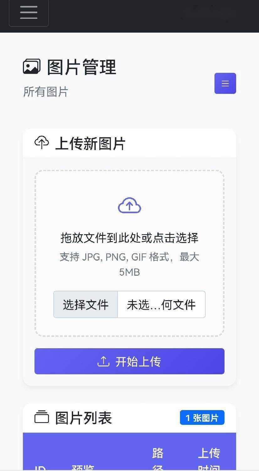 星空图床系统1.1.0版本更新日志:1.增加后台登录,退出登录,修改密码,图片管理,2.修复admin/head.php显示问题3.增加上传进度条