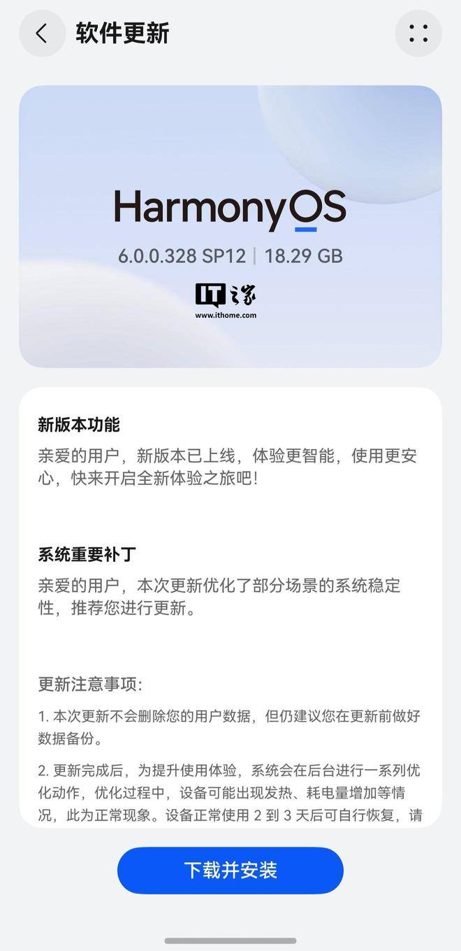 今日霍州 3 月 1 日消息,华为鸿蒙 HarmonyOS 6.0.0.328 花粉 Beta 版昨日开启招募,目前新版本已开启陆续推送,更新包大小超 10GB(部分机型更新包超 18GB),属于大版本范畴。