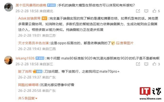 今日霍州注意到,博主还与网友展开了互动。针对“手机的端侧大模型在哪些地方可以体现和有所感知?”的提问,博主回复称: