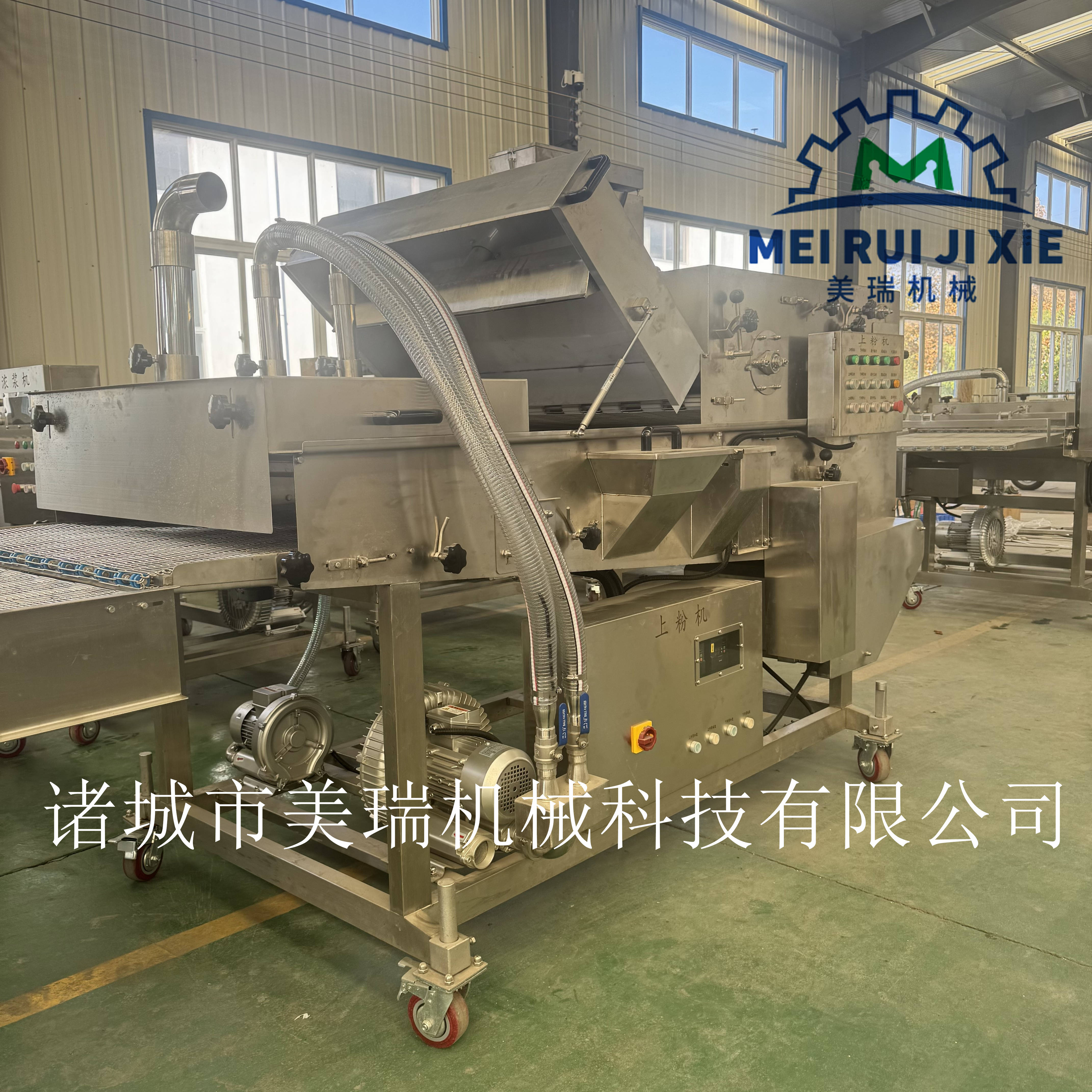 上粘下撒平行隧道式上粉机 鸡排全自动上粉设备 全自动鸡排裹粉机 小型食品上粉机 隧道式鱼块裹粉机锅包肉撒粉机鳕鱼排商用上粉机 多功能上粉机 可以与上浆机与成型机、上粉机、上屑机配合使用,亦可单独使用。可以对市场上流行的汉堡肉饼、麦乐鸡块、鱼香汉堡肉饼、鸡排,鱼排,土豆饼、南瓜饼、肉串等产品进行上浆处理,茄盒上浆机市场价格,是食品工厂理想的上浆设备。