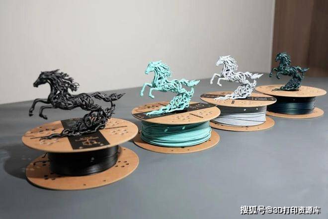 今年恰逢马年,我们还打印了Makerworld平台上的“空灵骏马”。该雕塑由扭曲的有机形态构成,搭配PLA-CF的哑光质感与层纹弱化效果,成品观感十分出色,很适合作为桌面摆件。