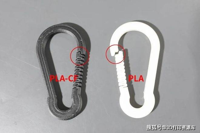 随后,我们又打印了一个挂钩,仅用于吊起各一卷材料。一夜之后,白色PLA挂钩已出现明显缝隙,而黑色PLA-CF挂钩未见变化。以上现象表明,PLA-CF在承载下更能保持尺寸稳定,具备明显更好的抗蠕变表现。