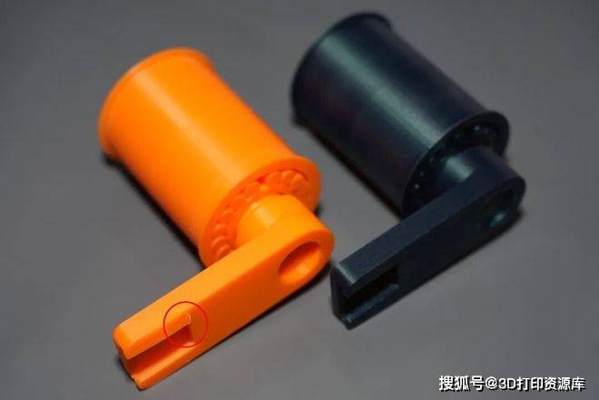 在测试中,我们打印了一个自用滚轮支架用于悬挂TPU弹性材料。使用一段时间后,左侧黄色的普通PLA支架出现变形甚至开裂,而右侧由艾普创墨绿色PLA-CF打印的支架始终完好无损。