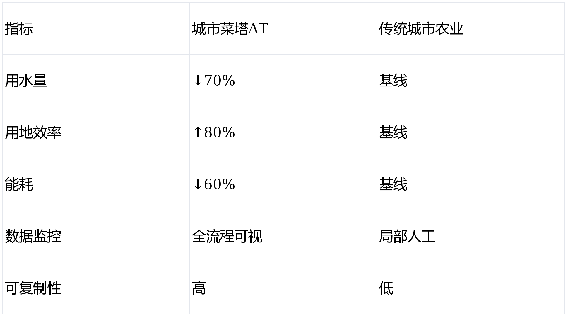 - 资源效率突出:据官方资讯数据,每平方米城市菜塔AT可比传统农业节水70%、节地80%,单位能耗降低60%。