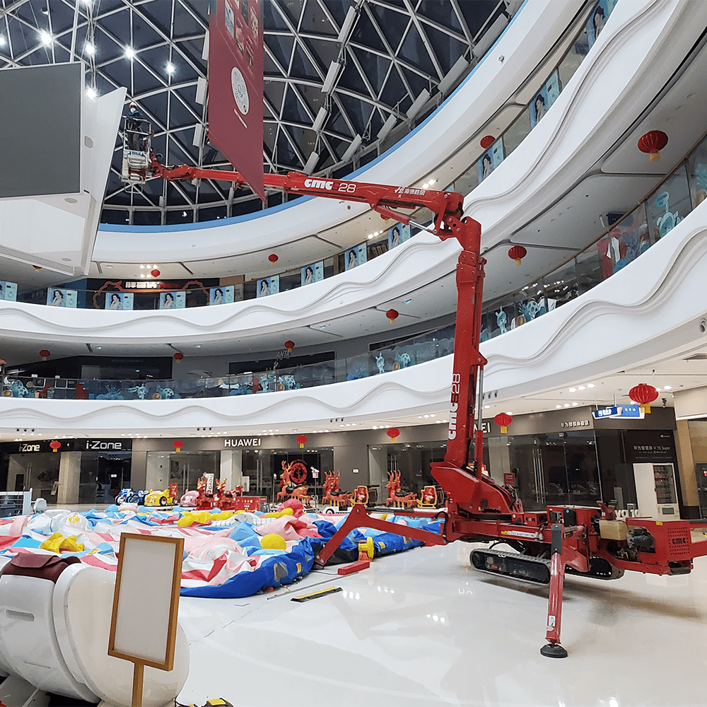 在河南地区,履带蜘蛛车的租赁服务主要面向建筑、装修、维护和清洁等行业。例如,在大型商场的天花板维修或灯具安装中,工作人员可能需要到达较高的位置。使用履带蜘蛛车,他们可以安全、高效地完成作业,而无需搭建脚手架或使用其他笨重的设备。同样,在仓库中,用于货物堆放或屋顶检查时,这种设备也能提供稳定的支持。
