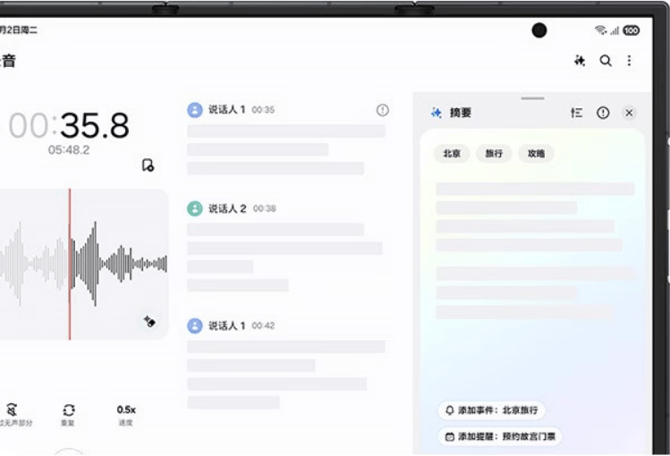 商务办公中,跨国会议必不可少,语言障碍往往会影响我的沟通效率,而『三星Galaxy』 Z TriFold的Galaxy AI技术,恰好解决了这一难题。它搭载的“会议助手”功能,支持实时双向翻译与转录,不仅能将语音精准转化为文字,还能自动区分发言人并生成会议纪要。依托10英寸大屏,我可以在查看会议原文的同时,同步审视AI生成的摘要,无需反复回放录音,大幅提升信息处理效率,让跨国沟通变得轻松顺畅。