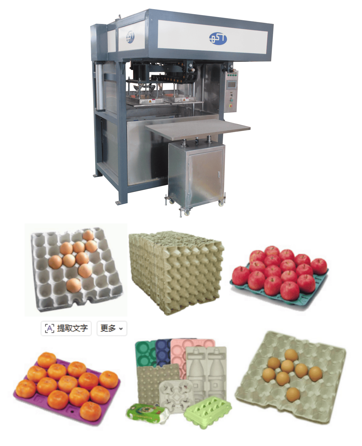 2.全自动蛋盒生产线配有自动热压机与贴标机