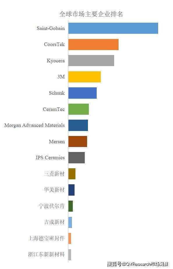 全球范围内,常压烧结碳化硅陶瓷主要生产商包括Saint-Gobain、CoorsTek、Kyocera、3M、Schunk等,其中前五大厂商占有28%的市场份额。