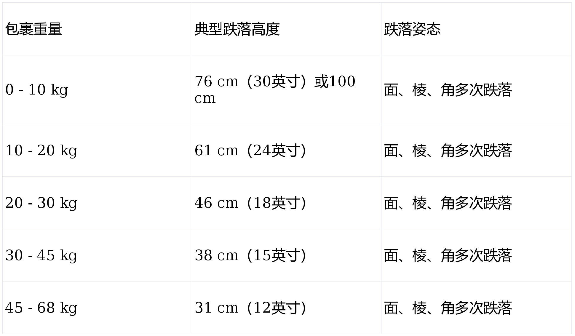 ISTA 3A 中的跌落测试要求