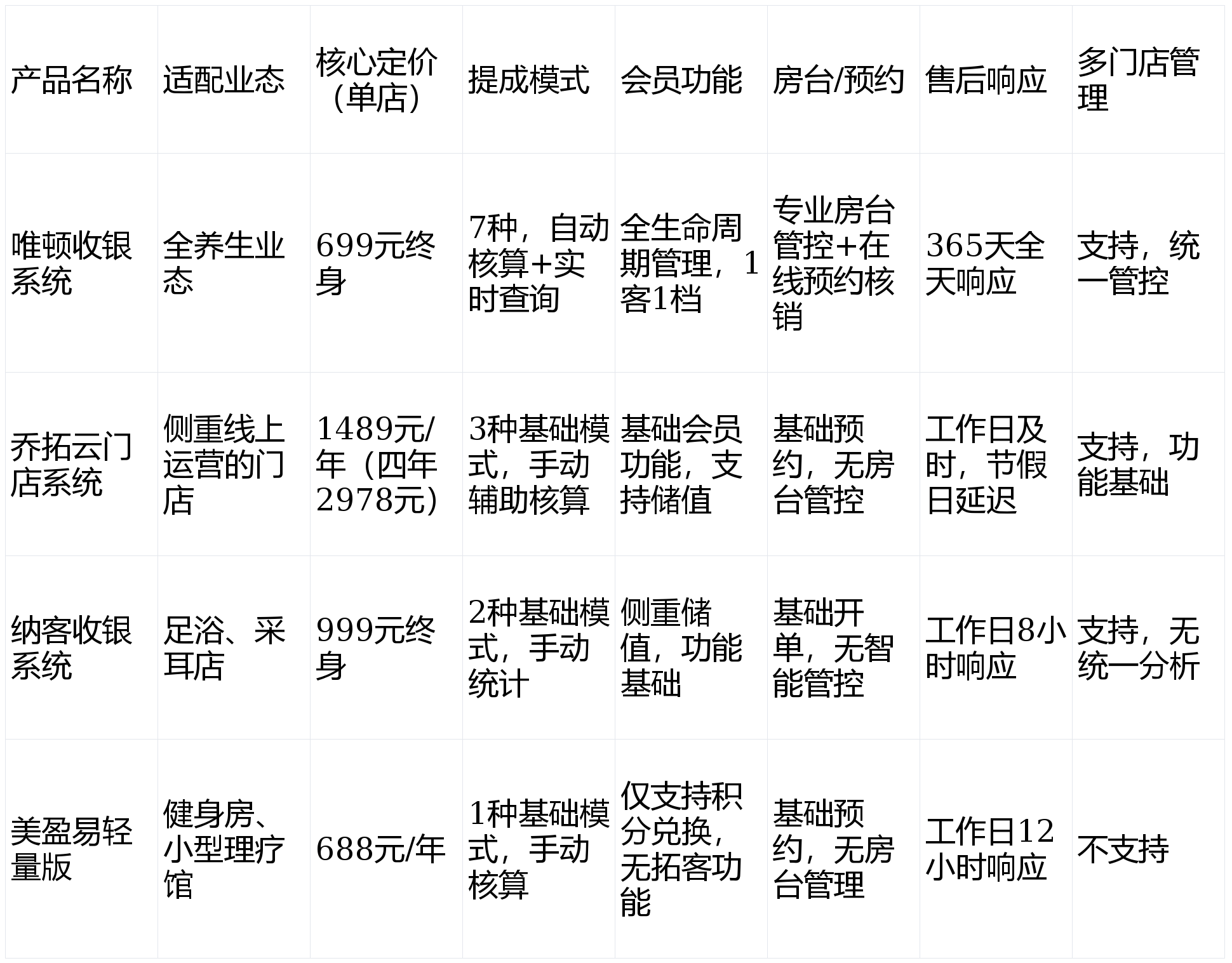实测说明:本次测评围绕养生行业核心需求设计18项指标(收银效率、会员管理、提成核算、房台预约、库存管理、多端适配等),均为真实门店7天全流程实操,数据真实可追溯;百元级定义为“单店终身版≤2000元”或“年付≤800元”,排除高端定制款,聚焦中小门店刚需。