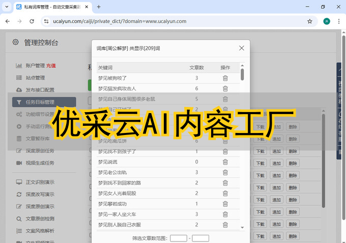 在添加任务目标时,我设置的关键词是“AI最新突破”和“『智能手机』发bu”。关键一步是在“搜索引擎入口”这里,我选择了“全网采集”。这意味着此工具会从百度、搜狗、头条、必应等多个平台为我抓取相关内容,信息覆盖面比我手动搜索广得多。