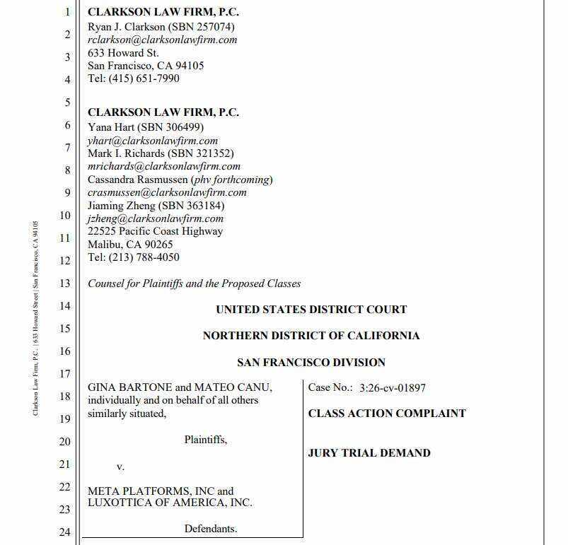 所述诉讼指控Meta及其眼镜👓制造合作伙伴依视路陆逊梯卡(美国)的行为违反了消费者保护法。Meta目前对此诉讼不予置评。