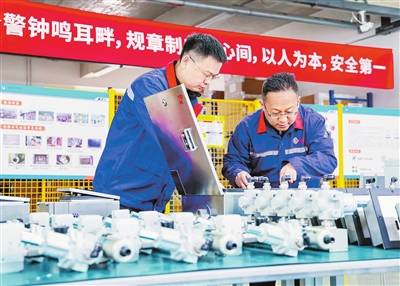 该企业是一家国家级高新技术企业、天津市科技型企业,专业从事电机电气防爆、节能升级及成套设备技术服务,拥有多项专利及软著,业务深耕石油化工、钢铁、煤化工、水泥、能源等行业,为大型企业提供安全可靠、绿色低碳的一站式电气解决方案。图为工作人员正在组装调试防爆电机设备。